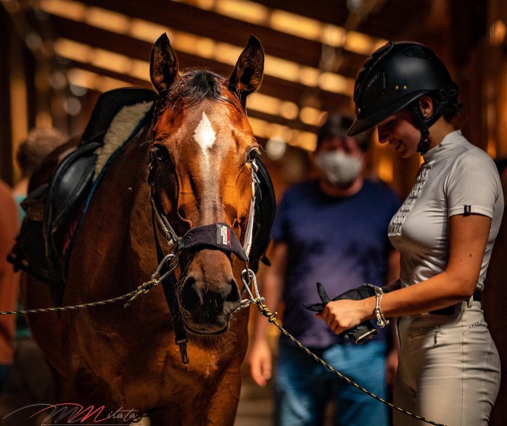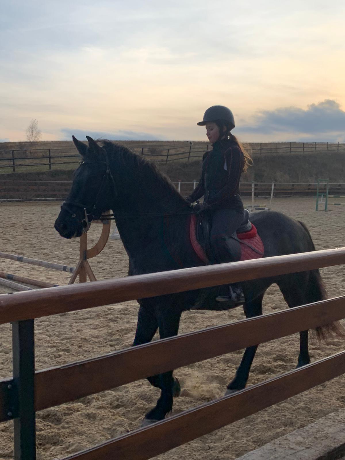 Mă numesc Veronica Rodina și practic echitația de la vârsta de 10 ani. Înca de mică mă simțeam atrasă de acest sport, iar prima vizită la Napoca Sport Horse a fost un vis devenit realitate. Echitația a ajuns să însemne foarte mult pentru mine deoarece îmi dă un scop concret, să progresez constant și mă ajută să mă reculeg în momentele dificile, fiind și o activitate extrem de terapeutică, nu doar un simplu sport. Când ești călare, nevoia de a fi prezent și atent atât la mediul înconjurător, cât și la partenerul tău, calul, te face să te deconectezi de le stresul cotidian și să te relaxezi. De asemenea, această responsabilitate care vine cu încălecatul unui cal îmi dă încredere și mă menține motivată. Tot prin echitație am învățat multe lecții de viață valoroase, legate în special de succes, esec și de menținerea unei atitudini pozitive și calme chiar și la sfârșitul unor antrenamente dificile. În viitor, plănuiesc să continui să practic echitația cât de des posibil, indiferent de ce meserie îmi voi alege și cu siguranță îmi voi aminti cu plăcere de toate momentele frumoase petrecute la Napoca Sport Horse.